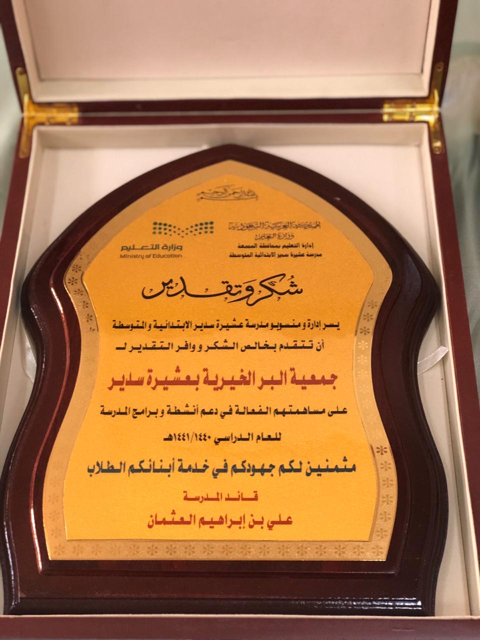 جمعية البر الخيرية بعشيرة سدير على تويتر في يوم الثلاثاء الموافق 2020 2 4م تم تكريم جمعية البر الخيرية بعشيرة سدير من قبل مدرسة عشيرة سدير الابتدائيه والمتوسطه للبنين وتم تسليم الدرع للمدير التنفيذي