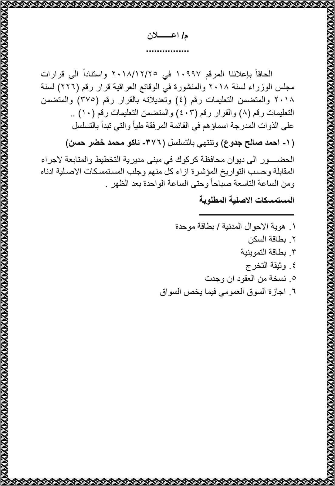 عاجل اسماء المدعوين للمقابلة الوجبة الثانية على تعيينات ديوان محافظة كركوك 2019 موقع تعيينات العراق