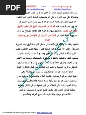دعوة سورة يس وخواتمها كاملة هدية من شيخ الروحانين الشيخ عطية عبد الحميد 0020162022238 Pdf