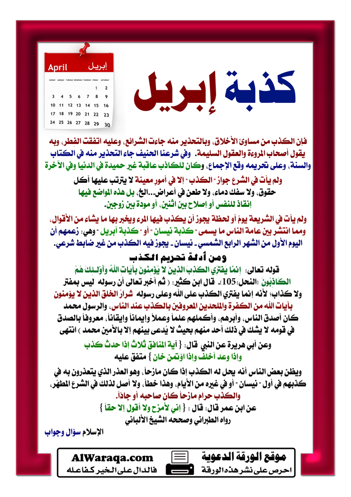 ما حكم كذبة نيسان ابريل شهر 4 ميلادي منتديات مزامير آل داو د
